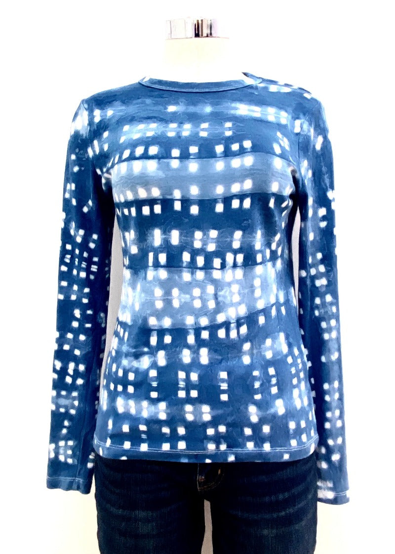 Could be 300 or more little boxes on this fun indigo-dyed T-shirt. You decide the details and Suzanne will make it yours.